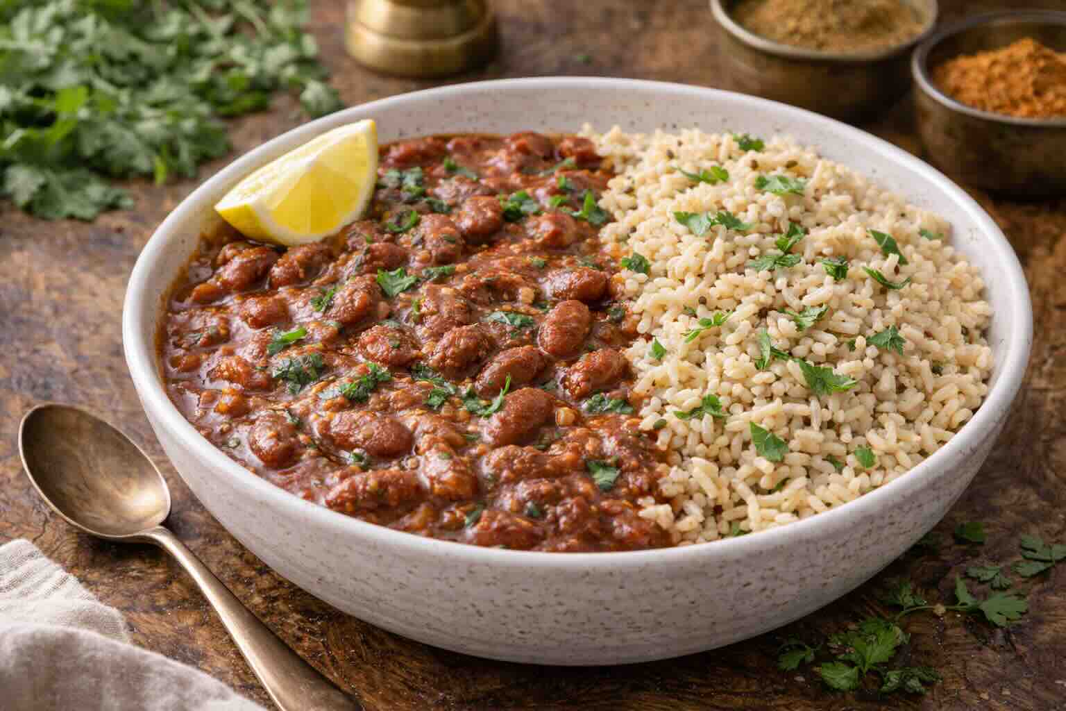 Spiced chickpeas paired with store-bought or quick pan-fried bhature/puri. Use canned chickpeas for a faster version.
